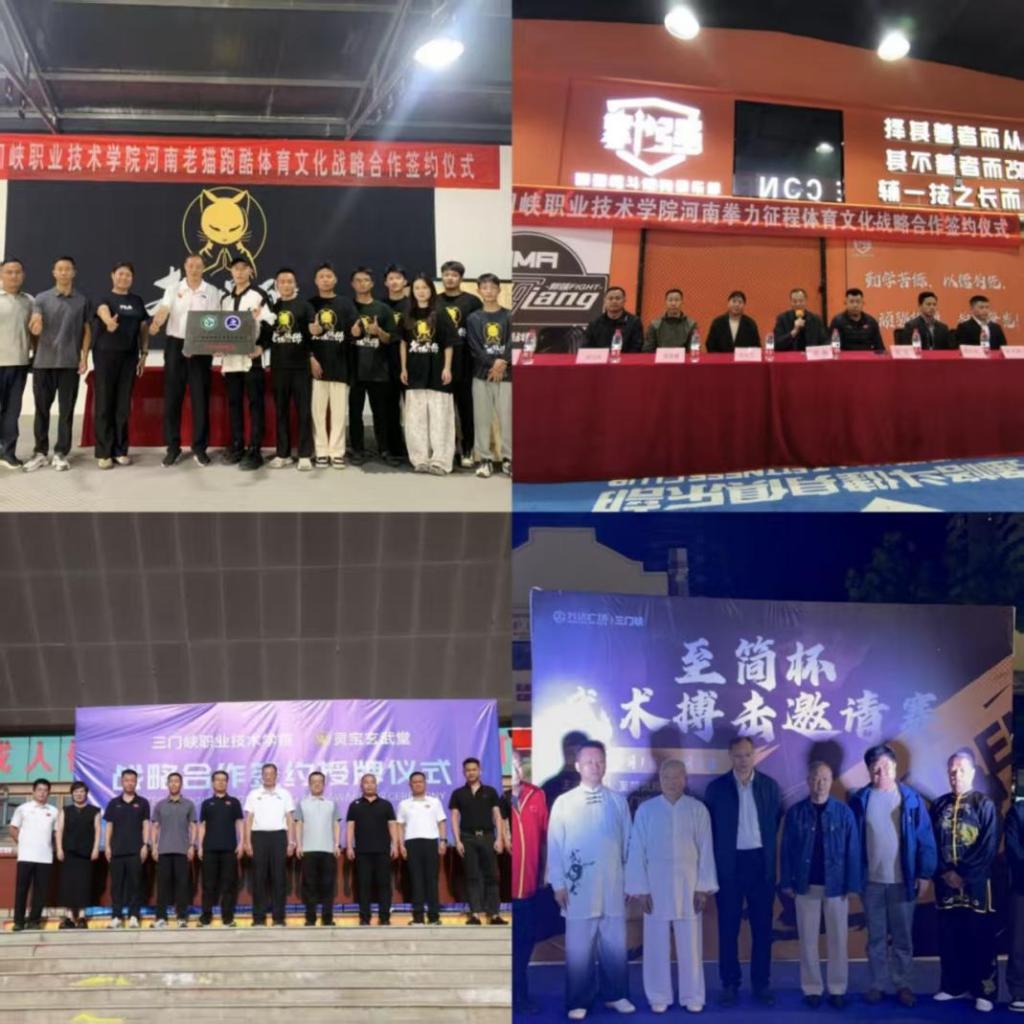 2025年3月至10月,体育学院积极推进校企合作,先后与三门峡郭强格斗俱乐部、老猫跑酷俱乐部、至简武院、灵宝玄武堂等多家体育企业签订战略合作框架协议,并分别举行“体育专业教育实践基地”授牌仪式。与企业方围绕人才培养、课程共建、实习实训、师资交流及赛事推广等方面达成合作共识。系列合作涵盖格斗、跑酷、武术搏击等多个体育项目,进一步拓展了校外实践教学平台,为推动产教融合、提升学生专业实践能力奠定了扎实基础。